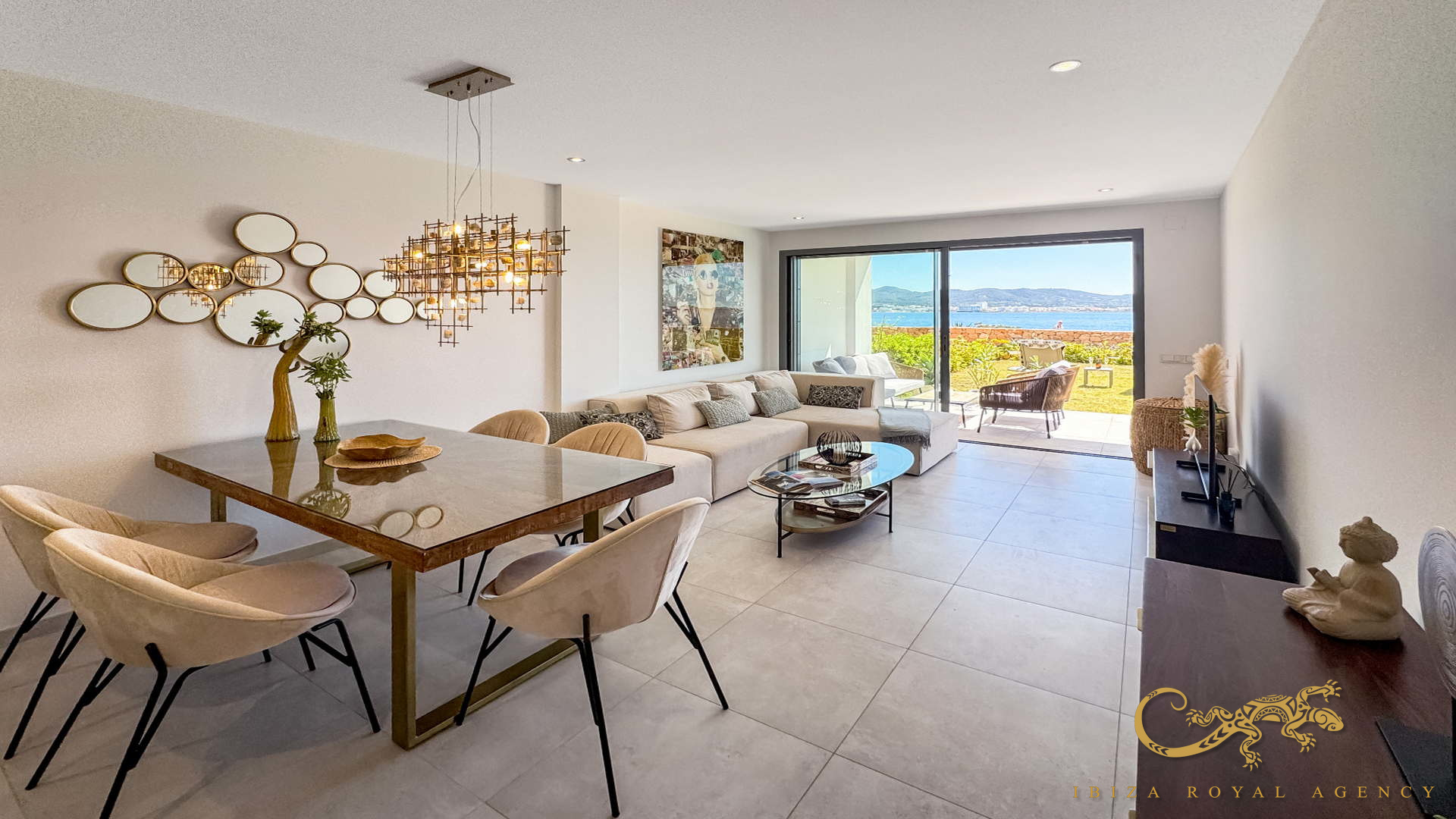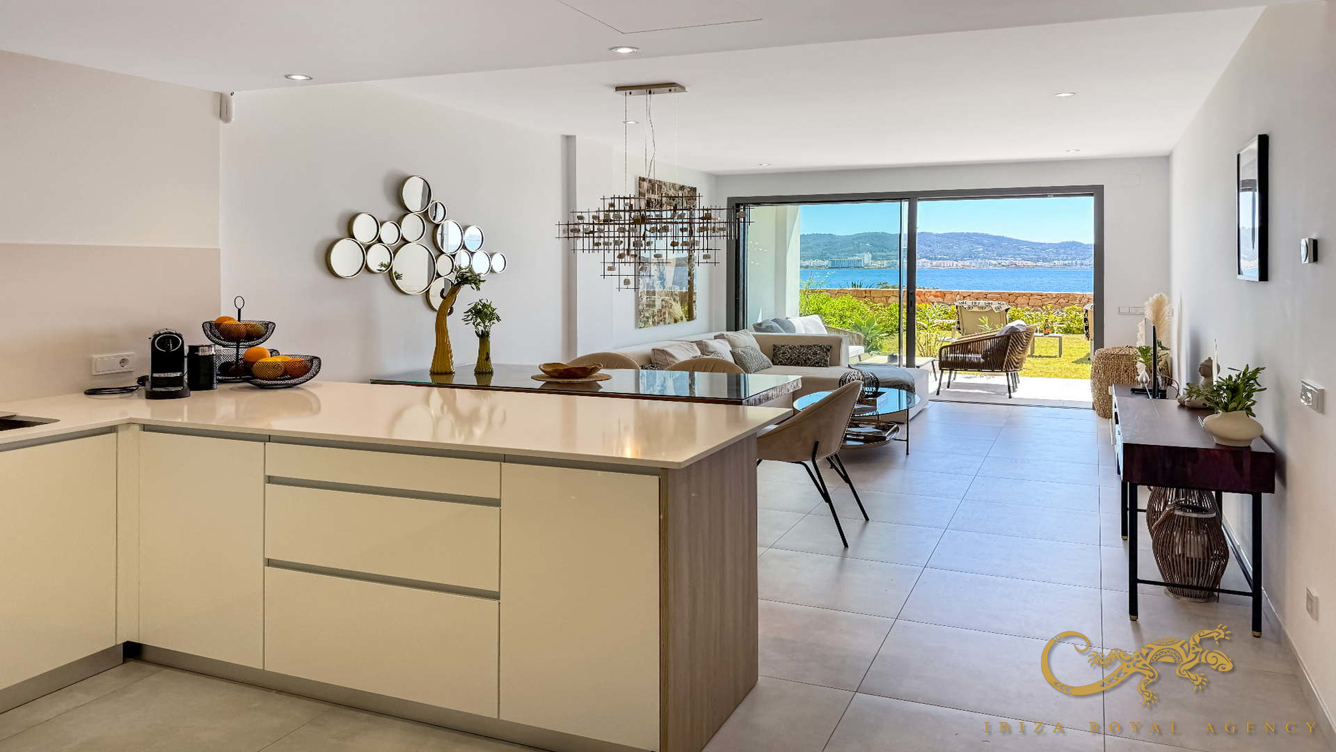 Stunning first-line apartment near Cala Gració with 2 bedrooms, 2 bathrooms, terrace, private garden, panoramic sea views, and communal pool. Experience the ultimate Ibiza lifestyle in style and comfort.